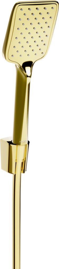 Technická data: Materiál sluchátek: plast Povrchová úprava sluchátek: zlatá Počet funkcí: 1 Připojení: G 1/2 " Výška sluchátek: 225 mm Šířka hlavy: 80 mm Materiál rukojeti: plast Povrchová úprava rukojeti: zlatá Typ montáže: Nástěnný Rozměry rukojeti: 60x44 mm Vzdálenost od stěny: 42 mm Materiál hadice: PVC Hadová úprava: zlato Délka hadice: 150 cm Připojení: 1/2 " Mosazné hroty Hladký povrch usnadňuje udržování čistoty Otočné hroty zabraňují kroucení Pružný materiál odolný proti roztažení a ohnutí