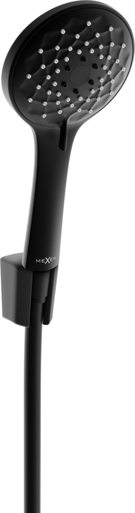 Technická data: Materiál sluchátek: plast Povrchová úprava sluchátek: Černá Počet funkcí: 3 Připojení: G 1/2 " Výška sluchátka: 230 mm Šířka hlavy: ø110 mm Materiál rukojeti: plast Povrchová úprava rukojeti: černá Typ montáže: Nástěnný Rozměry rukojeti: 60x44 mm Vzdálenost od stěny: 42 mm Materiál hadice: PVC Hadová úprava: Černá Délka hadice: 150 cm Připojení: 1/2 " Mosazné hroty Hladký povrch usnadňuje udržování čistoty Otočné hroty zabraňují kroucení Pružný materiál odolný proti roztažení a ohnutí