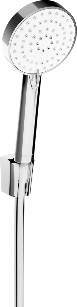 Technická data: Materiál sluchátek: plast Povrchová úprava sluchátek: chrom / bílá Počet funkcí: 3 Připojení: G 1/2 " Výška sluchátka: 230 mm Šířka hlavy: ø102 mm Materiál rukojeti: plast Povrchová úprava rukojeti: chrom Typ montáže: Nástěnný Rozměry rukojeti: 60x44 mm Vzdálenost od stěny: 42 mm Materiál hadice: PVC Povrchová úprava hadice: chrom Délka hadice: 150 cm Připojení: 1/2 " Mosazné hroty Hladký povrch usnadňuje udržování čistoty Otočné hroty zabraňují kroucení Pružný materiál odolný proti roztažení a ohnutí