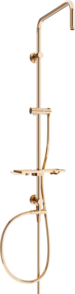 Technická data: Materiál sloupu: nerezová ocel, ABS Povrchová úprava sloupku: Růžové zlato Výška: 950 mm Šířka sloupku: 22 mm Vzdálenost od stěny: 400 mm Miska na mýdlo Posuvný držák sluchátka Nastavitelné montážní držáky Materiál hadice: PVC Hadová úprava: Růžové zlato Délka hadice: 150 cm Mosazné hroty Hladký povrch usnadňuje udržování čistoty Otočné hroty zabraňují kroucení Pružný materiál odolný proti roztažení a ohnutí
