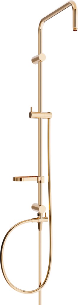 Technická data: Materiál sloupu: nerezová ocel, ABS Povrchová úprava sloupku: Rose Gold Výška: 950 mm Šířka sloupku: 22 mm Vzdálenost od stěny: 400 mm Miska na mýdlo Posuvný držák sluchátka Nastavitelné montážní držáky Materiál hadice: PVC Hadová úprava: růžové zlato Délka hadice: 150 cm Mosazné hroty Hladký povrch usnadňuje udržování čistoty Otočné hroty zabraňují kroucení Pružný materiál odolný proti roztažení a ohnutí