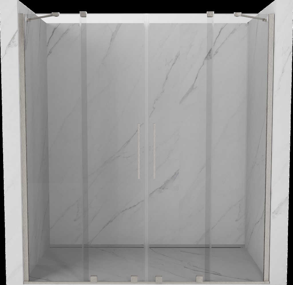 Specifikace produktu: Rozměr: 180x200 cm Instalace: Univerzální Vstup: posuvný Barva skla: Transparentní Typ skla: Tvrzené Tloušťka skla: 8 mm Profil: Hliník Povrchová úprava: Kartáčovaný nikl Povlak pro snadné čištění Vyrovnání nerovností stěny Nastavení šířky Lze namontovat na sprchovou vaničku nebo dlaždice Rukojeť z nerezové oceli Sada těsnění pro odvod vody Hliníkový těsnící práh dveří