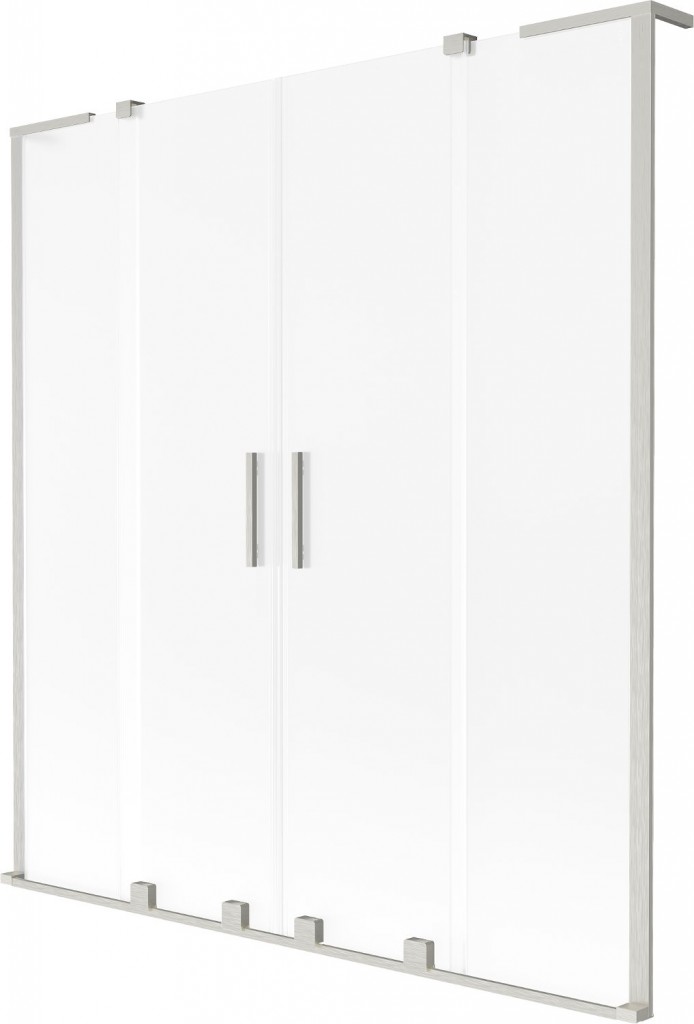Technické údaje: Šířka: 150 cm Výška: 150 cm 2 listový typ Instalace: Univerzální Typ: Pohyblivý/Rozšiřitelný Typ skla: Tvrzené Barva skla: Frost Tloušťka skla: 8 mm Povrchová úprava: Kartáčovaný nikl L-úhlový stabilizátor Povlak pro snadné čištění Vyrovnání nerovností stěny Sada těsnění pro odvod vody