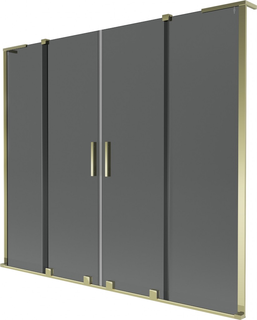 Technické údaje: Šířka: 180 cm Výška: 150 cm 2-listý typ Instalace: Univerzální Typ: Pohyblivý/Rozšiřitelný Typ skla: Tvrzené Barva skla: Grafit Tloušťka skla: 8 mm Povrchová úprava: zlatá L-úhlový stabilizátor Povlak pro snadné čištění Vyrovnání nerovností stěny Sada těsnění pro odvod vody