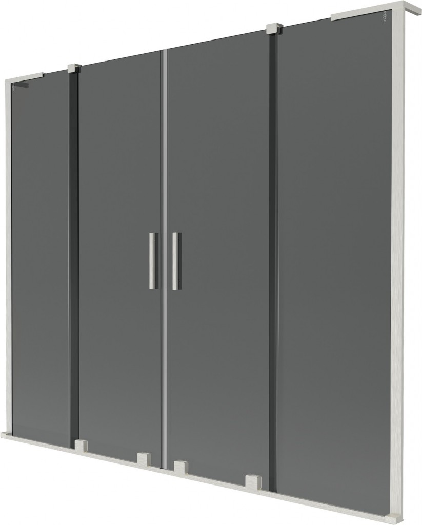 Technické údaje: Šířka: 200 cm Výška: 150 cm 2-listý typ Instalace: Univerzální Typ: Pohyblivý/Rozšiřitelný Typ skla: Tvrzené Barva skla: Grafit Tloušťka skla: 8 mm Povrchová úprava: Kartáčovaný nikl L-úhlový stabilizátor Povlak pro snadné čištění Vyrovnání nerovností stěny Sada těsnění pro odvod vody