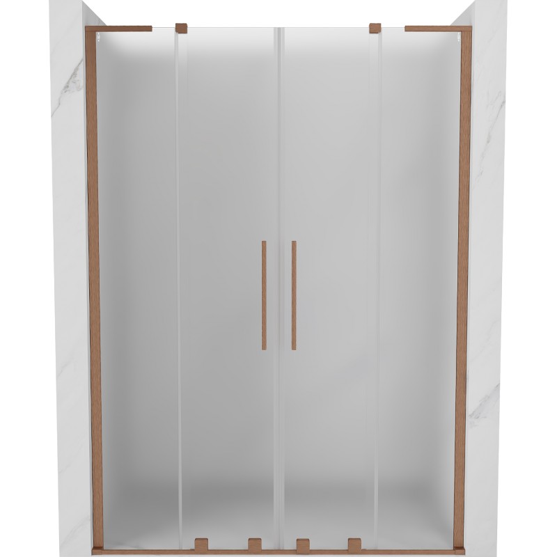 Specifikace produktu: Rozměr: 140x200 cm Instalace: Univerzální Vstup: posuvný Barva skla: Frost Typ skla: Tvrzené Tloušťka skla: 8 mm Profil: Hliník Povrchová úprava: broušená měď L-úhlový stabilizátor: Nerezová ocel Povlak pro snadné čištění Vyrovnání nerovností stěny Nastavení šířky Lze namontovat na sprchovou vaničku nebo dlaždice Rukojeť z nerezové oceli Sada těsnění pro odvod vody Hliníkový těsnící práh dveří