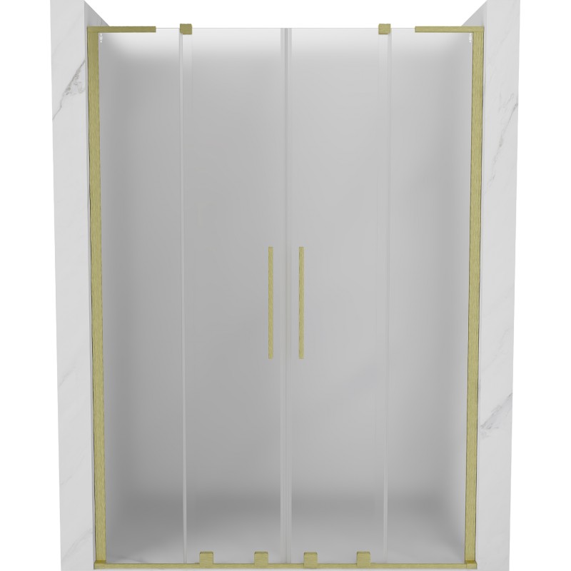 Specifikace produktu: Rozměr: 140x200 cm Instalace: Univerzální Vstup: posuvný Barva skla: Frost Typ skla: Tvrzené Tloušťka skla: 8 mm Profil: Hliník Povrchová úprava: broušené zlato L-úhlový stabilizátor: Nerezová ocel Povlak pro snadné čištění Vyrovnání nerovností stěny Nastavení šířky Lze namontovat na sprchovou vaničku nebo dlaždice Rukojeť z nerezové oceli Sada těsnění pro odvod vody Hliníkový těsnící práh dveří