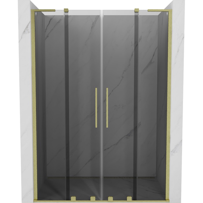 Specifikace produktu: Rozměr: 160x200 cm Instalace: Univerzální Vstup: posuvný Barva skla: Grafit Typ skla: Tvrzené Tloušťka skla: 8 mm Profil: Hliník Povrchová úprava: broušené zlato L-úhlový stabilizátor: Nerezová ocel Povlak pro snadné čištění Vyrovnání nerovností stěny Nastavení šířky Lze namontovat na sprchovou vaničku nebo dlaždice Rukojeť z nerezové oceli Sada těsnění pro odvod vody Hliníkový těsnící práh dveří