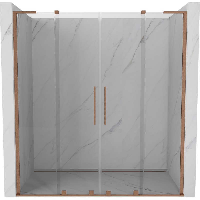 Specifikace produktu: Rozměr: 170x200 cm Instalace: Univerzální Vstup: posuvný Barva skla: Transparentní Typ skla: Tvrzené Tloušťka skla: 8 mm Profil: Hliník Povrchová úprava: broušená měď L-úhlový stabilizátor: Nerezová ocel Povlak pro snadné čištění Vyrovnání nerovností stěny Nastavení šířky Lze namontovat na sprchovou vaničku nebo dlaždice Rukojeť z nerezové oceli Sada těsnění pro odvod vody Hliníkový těsnící práh dveří