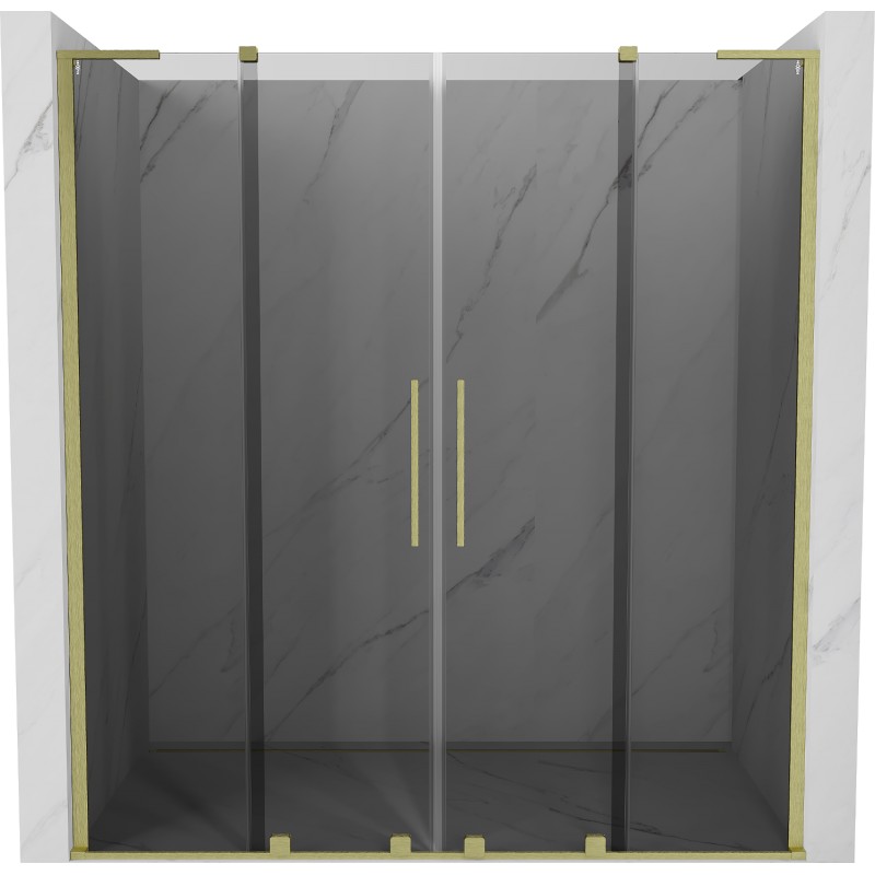 Specifikace produktu: Rozměr: 180x200 cm Instalace: Univerzální Vstup: posuvný Barva skla: Grafit Typ skla: Tvrzené Tloušťka skla: 8 mm Profil: Hliník Povrchová úprava: broušené zlato L-úhlový stabilizátor: Nerezová ocel Povlak pro snadné čištění Vyrovnání nerovností stěny Nastavení šířky Lze namontovat na sprchovou vaničku nebo dlaždice Rukojeť z nerezové oceli Sada těsnění pro odvod vody Hliníkový těsnící práh dveří