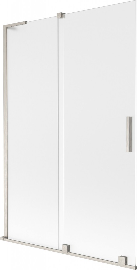 Technické údaje: Šířka: 120 cm Výška: 150 cm 2-listý typ Instalace: Univerzální Typ: Pohyblivý/Rozšiřitelný Typ skla: Tvrzené Barva skla: Frost Tloušťka skla: 8 mm Povrchová úprava: Kartáčovaný nikl L-úhlový stabilizátor Povlak pro snadné čištění Vyrovnání nerovností stěny Sada těsnění pro odvod vody