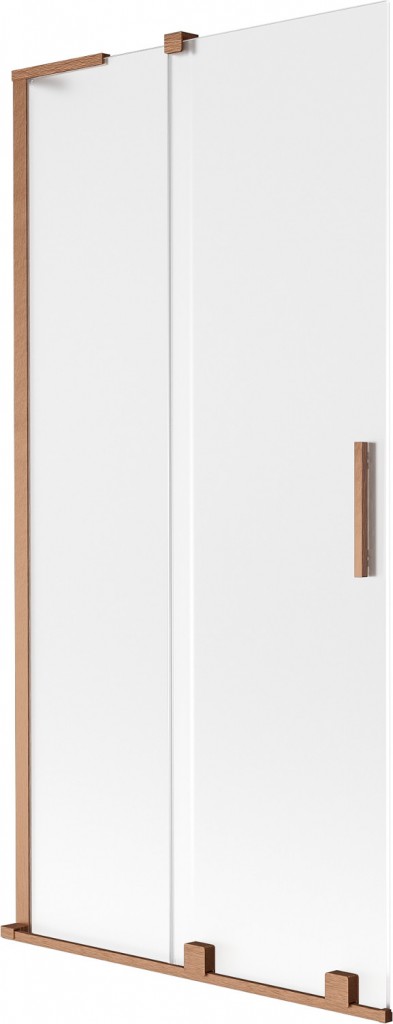 Technické údaje: Šířka: 95 cm Výška: 150 cm 2-listý typ Instalace: Univerzální Typ: Pohyblivý/Rozšiřitelný Typ skla: Tvrzené Barva skla: Frost Tloušťka skla: 8 mm Povrchová úprava: broušená měď L-úhlový stabilizátor Povlak pro snadné čištění Vyrovnání nerovností stěny Sada těsnění pro odvod vody
