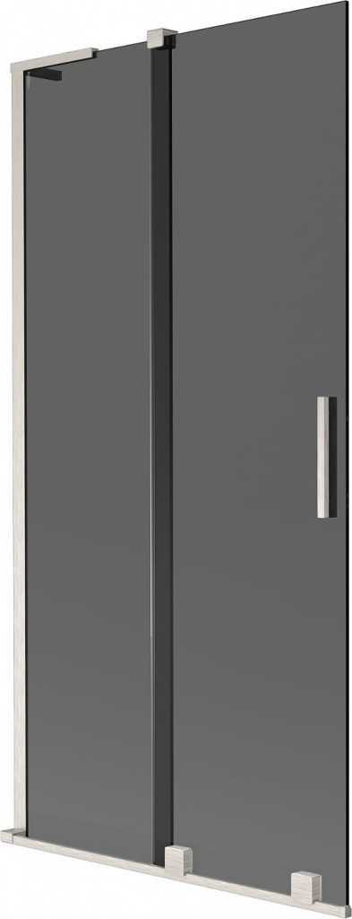 Technické údaje: Šířka: 95 cm Výška: 150 cm 2 listový typ Instalace: Univerzální Typ: Pohyblivý/Rozšiřitelný Typ skla: Tvrzené Barva skla: Grafit Tloušťka skla: 8 mm Povrchová úprava: Kartáčovaný nikl L-úhlový stabilizátor Povlak pro snadné čištění Vyrovnání nerovností stěny Sada těsnění pro odvod vody