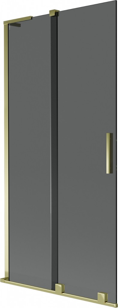 Technické údaje: Šířka: 95 cm Výška: 150 cm 2-listý typ Instalace: Univerzální Typ: Pohyblivý/Rozšiřitelný Typ skla: Tvrzené Barva skla: Grafit Tloušťka skla: 8 mm Povrchová úprava: zlatá L-úhlový stabilizátor Povlak pro snadné čištění Vyrovnání nerovností stěny Sada těsnění pro odvod vody
