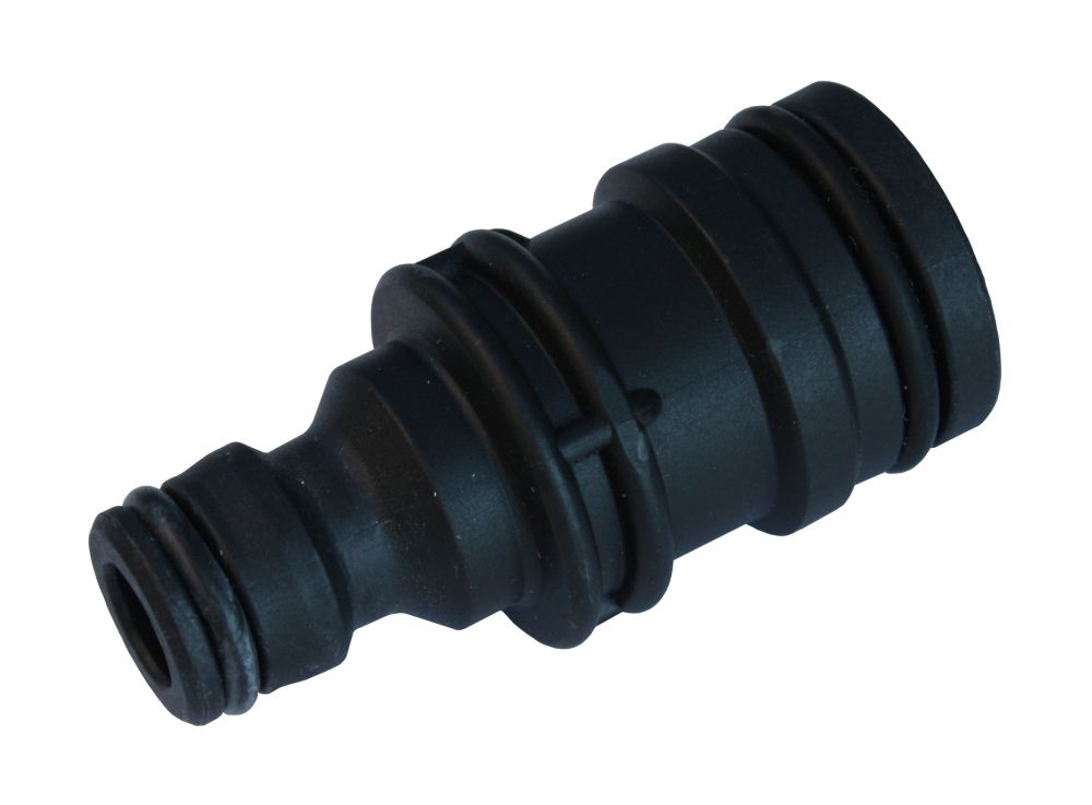 Plastový adaptér se dvěma konci pro rychlé propojení zahradních hadic pomocí rychlospojek. MAXI program se vyznačuje větším a robustnějším provedením bez omezení průtoku.