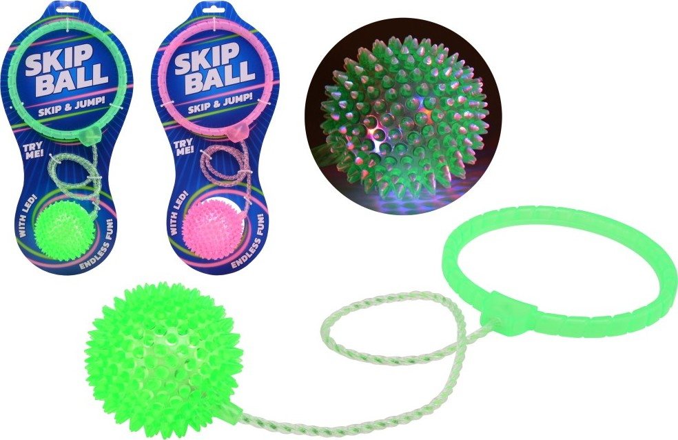 Míč „skip“ se šňůrkou a proskakovacím kroužkem.