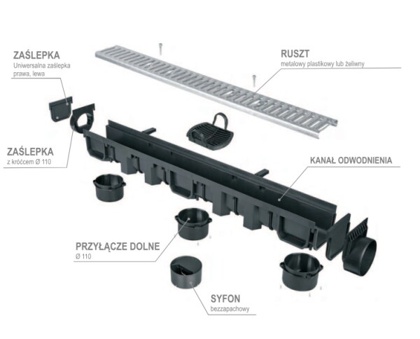 MIDAS A -čelní stěna pro odvodňovací A- žlab (pozink i plast ) pro NÍZKÝ 55mm 55 mm p5857