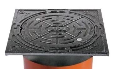 MIDAS Poklop litinový hranatý s kulatým víkem uzamykatelný na 2 šrouby, B 125(12,5t),DN 315 hl p1730
