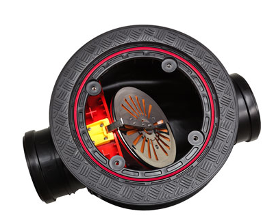 Pohodlný způsob ochrany budov před povodněmi, pokud hlavní kanalizace vede přímo pod podlahou přízemí budovy, je nejvhodnější použít zpětný ventil pro instalaci do podlahy.Šachta je instalována na úrovni podlahy ( je povolena montáž až cca 5 mm pod tuto úroveň ) Chrání nízko položené místnosti před zaplavením způsobeným zpětným tokem splašků a chrání kanalizační systémy před vniknutím krys.Zařízení umožňuje snadný přístup z podlahy do kanalizace za účelem čištění nebo údržby.Odolává vnitřnímu tlaku do 0,5 baru .Šachta je včetně poklopu se zvýšenou zátěží do 3 tun , který je upevněn pomocí chromniklových šroubů a těsné uzavření víka zabraňuje úniku nepříjemných pachů . Aplikovaný UV stabilizátor výrazně zvyšuje odolnost potahů vůči povětrnostním vlivům a zachovává jejich intenzivní barvu.