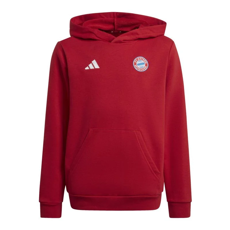 Vlastnosti: Dětská mikina adidas. Klubové znaky Bayernu Mnichov. Vkládá se přes hlavu. Velká kapsa na přední straně. Žebrované manžety a spodní část mikiny. Materiál: materiál: bavlna, polyester Barva: černá, bílá, zelená, žlutá, modrá: barva: červená