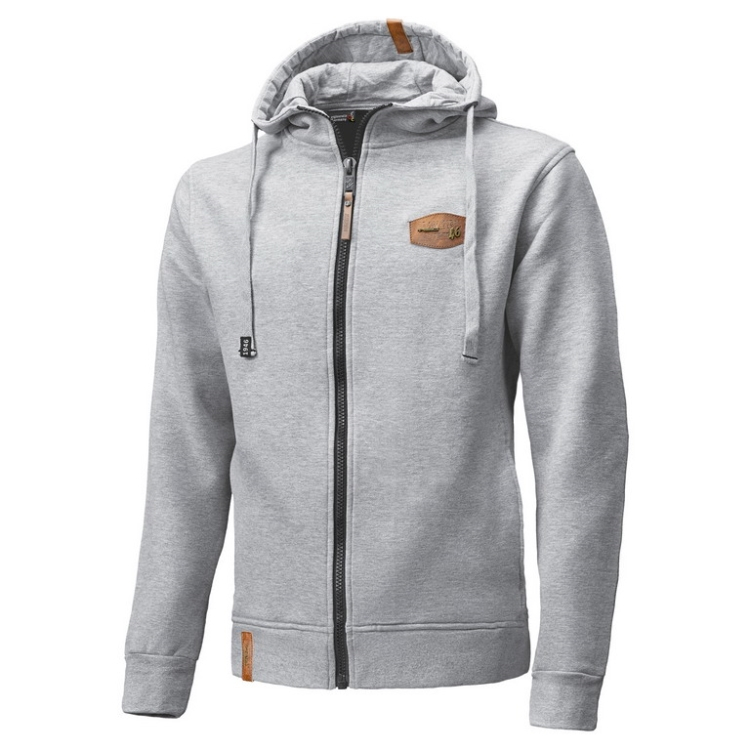 HELD 46 Pánská mikina Vlastnosti: kapuce elastické lemy kolem zápěstí a v pase dvě vnější kapsy zapínání bundy zipem mix bavlny a polyesteru šedá Pro další informace kliknětě na odkaz Tabulka velikostí Held Péče a materiály Held