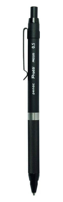 Dárková mikrotužka Penac Protti s kovovou objímkou pro přesné linky při rýsování, šrafování, skicování, psaní i kreslení. Elegantní štíhlé kovové tělo v matné černé barvě, jehož jednoduchý design doplňují decentní kovové prvky a lesklý stříbřitě šedý proužek. Unikátní měkký mechanismus zabraňuje zlomení tuhy a zajišťuje pohodlné psaní. Udrží i velmi krátké tuhy, čímž umožňuje využít tuhu na maximum. Protiskluzový úchop ve formě vroubkování, kovový klip, pryž bez silikonu a PVC. Dodáváno v papírové dárkové krabičce. Šíře: 0,5 mm. Vyrobeno v Japonsku.