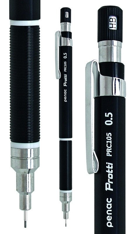 Mikrotužka Penac Protti s kovovou objímkou pro přesné linky při rýsování, šrafování, skicování, psaní i kreslení je opatřena unikátním mechanismem. Jakmile potřebujete tuhu posunout, stačí zatlačit na hrot mikrotužky a tuha se sama posune. Mechanismus umožňuje jednoduše posouvat tuhu dál do hrotu a zároveň udrží i velmi krátké tuhy, čímž umožňuje využít tuhu na maximum. Jedním přitlačením hrotu k podložce uvolníte tuhu o délce 1 mm, která zajistí 5 m psaní. Kovový hrot je plně zasouvací a tím je chráněn proti možnému poškození. Na stiskací straně mikrotužky naleznete indikátor tvrdosti vložené tuhy - otočením vroubkovaného krytu pryže do příslušné polohy si můžete zvolit, jakou tvrdost aktuálně v mikrotužce používáte (B, HB, F, H, 2H, 3H). Protiskluzový úchop ve formě vroubkování, kovový klip, pryž bez silikonu a PVC. Dodáváno v papírové krabičce. Šíře: 0,5 mm. Vyrobeno v Japonsku.