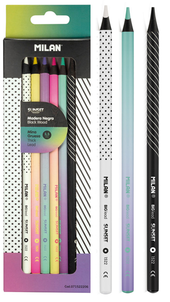 Pastelky v černém dřevě, skvěle kontrastují s barevným zdobeným lakem. V sadě je 6 kusů pastelek, které obsahují tuhu s jasnými odstíny v pastelovém nádechu. Tuha není vodou rozmývatelná. Pastelky jsou vyrobené technologií, která zamezuje nadměrnému lámání tuhy (Lead protection system). Sada je dodávána na blistr kartě.
