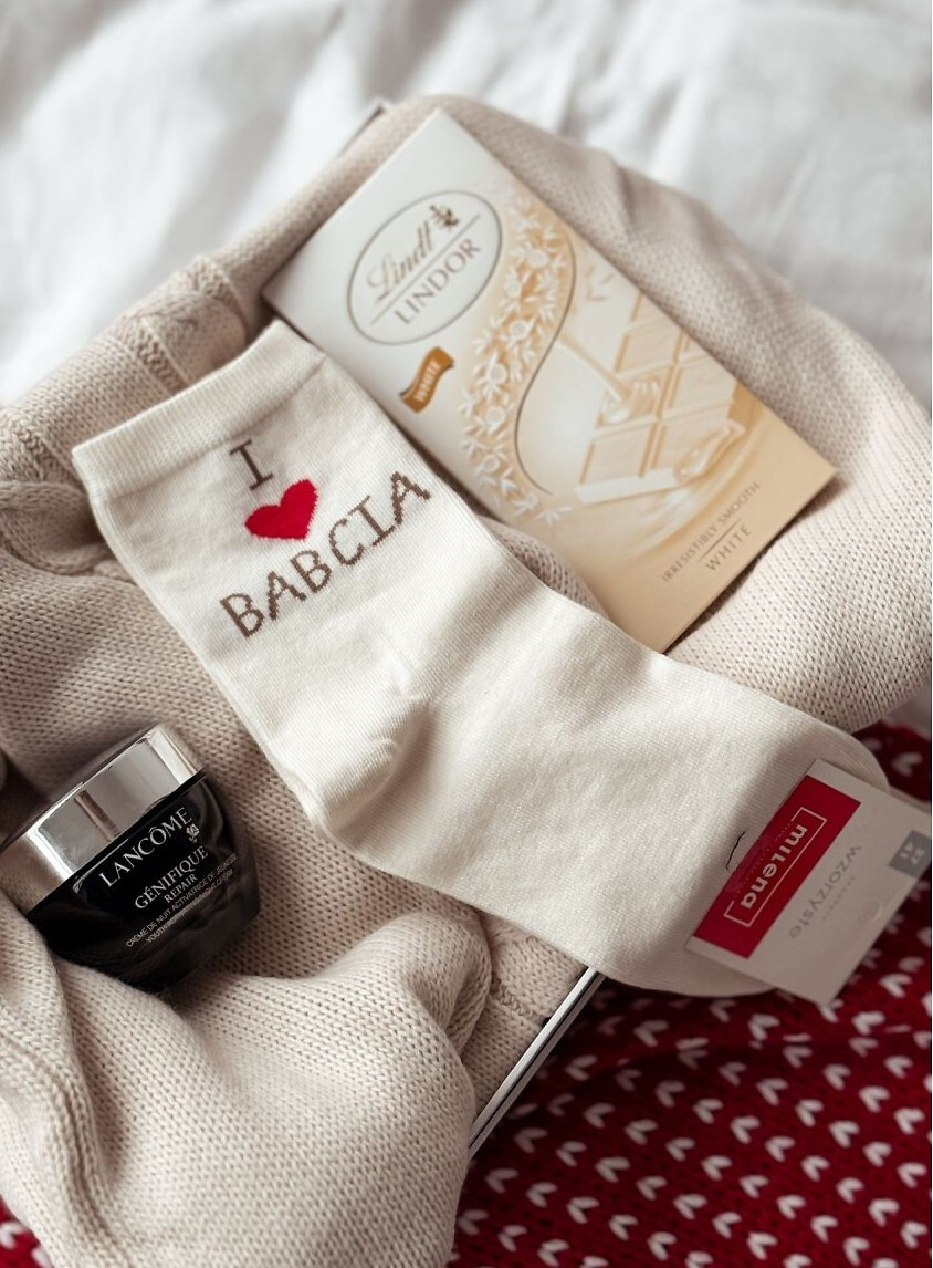 Dámské ponožky - vysoce kvalitní bavlna - ozdobný nápis k příležitosti "Dne babičky" - ploché švy - netlačící pásek Složení: 75 % bavlna, 20 % polyamid, 5 % elastan