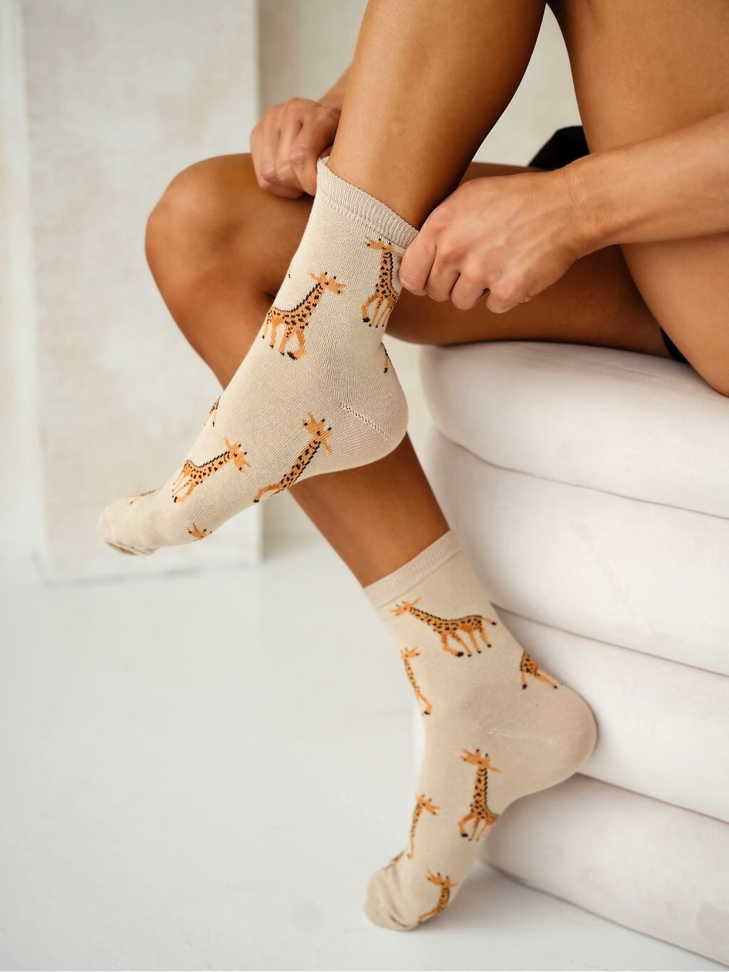 Dámské ponožky - z vysoce kvalitní bavlny - zdobené žirafím vzorem - ideální pro každodenní nošení - dokonale se přizpůsobí vašim nohám - zajišťují vysoký komfort nošení Složení: 75 % bavlna, 20 % polyamid, 5 % elastan