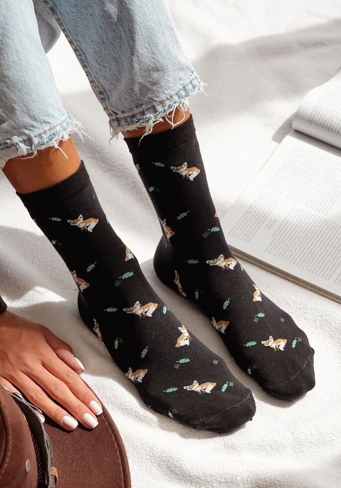 Milena ponožky 0200-182 Lišky a listy 37-41 lehká melanž 37-41