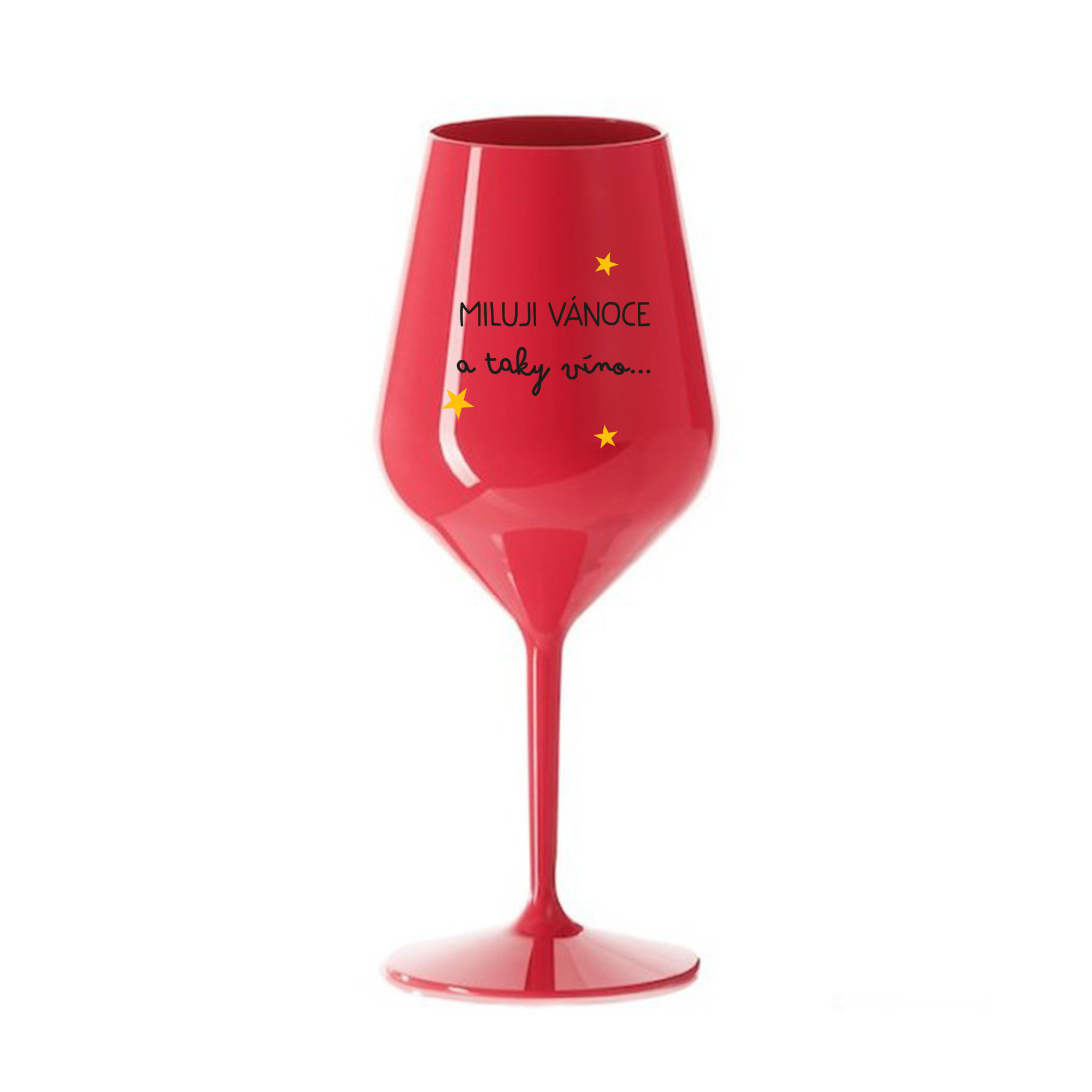 Nerozbitná červená vinná sklenice s motivem MILUJI VÁNOCE A TAKY VÍNO je skvělá na zahradu, pláž, výlet, piknik a parádu udělá i při kempování. Jelikož je vyrobená z kvalitního polykarbonátu je de facto nerozbitná. Je to luxusní kousek, s nímž si víno můžete vychutnat prostě kdekoliv. Mají ergonomický tvar, který příjemně padne do ruky a protože je lehká, usnadňuje to její přenášení. Je snadno skladovatelná a lehce se čistí. Díky svému designu si s ní můžete vychutnat doopravdy kdekoliv bezproblémové pití výborného vína. Materiál PP. Vyrobené s láskou v ČR