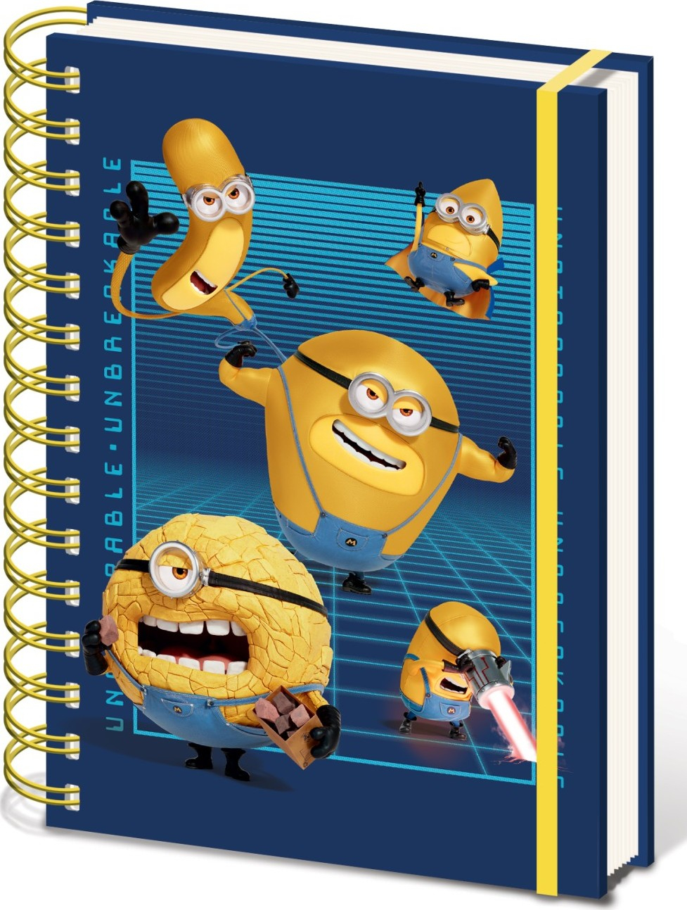 Linkovaný zápisník A5 s kroužkovou vazbou Mimoni. Rozměry: 21,4 x 16,4 cm