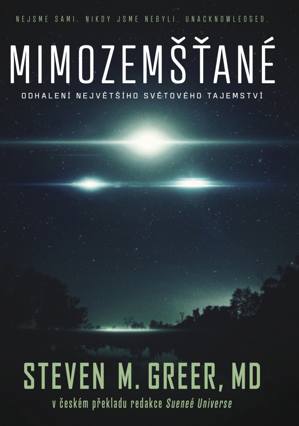 <p></p><p style="text-align:justify;"> <em>Nejsme sami. Nikdy jsme nebyli sami. Unacknowledged </em></p> <p style="text-align:justify;"> <em><strong>Je to největší tajemství 20. století, o kterém se média bojí mluvit a vědci seriózně přemýšlet. Veřejnost je udržována v klamu, aby jako slepé stádo hleděla jinam. -- Sueneé, 2017</strong></em></p> <p style="text-align:justify;"> <strong>Tato kniha tak přináší překvapující zjištění o největším zakrývání pravdy v novodobé historii lidstva.</strong></p> <p style="text-align:justify;"> Nové zázračné technologie jsou už k dispozici a mohou zabránit globální ekologické katastrofě. Už žádná těžba fosilních paliv, už žádný benzín, uhlí, jaderné elektrárny nebo spalovací motory. Blížíme se konci jedné velké éry. Ale podaří se na této cestě k lepšímu uspořádání světa pozvednout hlas pravdy a překonat odpor mocných vlivových skupin?</p> <p style="text-align:justify;"> Dr. Steven M. Greer je na poli ET/UFO jednou z vůdčích autorit. Úřadujícím americkým prezidentům, členům Kongresu, ředitelům CIA a DIA i mnoha dalším světovým vůdcům a vojenským velitelům poskytl k tomuto tématu souhrnné informace. Má kontakt na stovky vědců, civilistů i vládních a armádních činitelů, kteří mají prověrky <strong>Nad přísně tajné </strong>(Above Top Secret) s možností přístupu k Zatajovaným projektům se zvláštním přístupem (USAP).</p> <p style="text-align:justify;"> <em>"Lidstvo se začne chovat rozumně, až když vyčerpá všechny dosavadní možnosti." Jan Werich</em></p> <p style="text-align:justify;"> Jen aby už nebylo pozdě!</p>