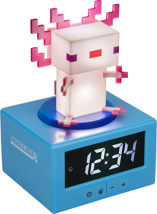 Minecraft budík Axolotl Minecraft budík Axolotl je tematický budík inspirovaný populární hrou Minecraft, který je zařazen do kategorie merch a licenčních dárků. Tento produkt je součástí širší skupiny ostatních hraček, což z něj činí zajímavý doplněk nejen pro fanoušky hry, ale i pro sběratele tematických předmětů. Budík má výrazný design, který věrně zobrazuje postavu axolotla v pixelovém stylu typickém pro Minecraft. Budík je vyroben z plastu a jeho barevné provedení odpovídá charakteristické světle růžové barvě axolotla, doplněné o detaily v podobě černých a bílých pixelů, které zajišťují autentický vzhled. Jeho tvar je kompaktní a praktický, což usnadňuje umístění na noční stolek. Číselník budíku je analogový, s přehlednými číslicemi a dvěma ručičkami, které jsou dobře viditelné i za snížené viditelnosti. Budík je opatřen také malým tlačítkem pro ovládání budíku a pravděpodobně i pro zapnutí osvětlení číselníku. Pro provoz budíku jsou potřeba tři tužkové baterie typu AA, které nejsou součástí balení, což je důležité zohlednit při jeho používání. Tento detail je uveden přímo na výrobku či v přiloženém návodu. Celkově je Minecraft budík Axolotl vhodný pro děti i dospělé, kteří ocení spojení praktického doplňku s oblíbeným herním motivem. Jeho robustní konstrukce a jednoduché ovládání z něj dělají spolehlivý budík pro každodenní použití.