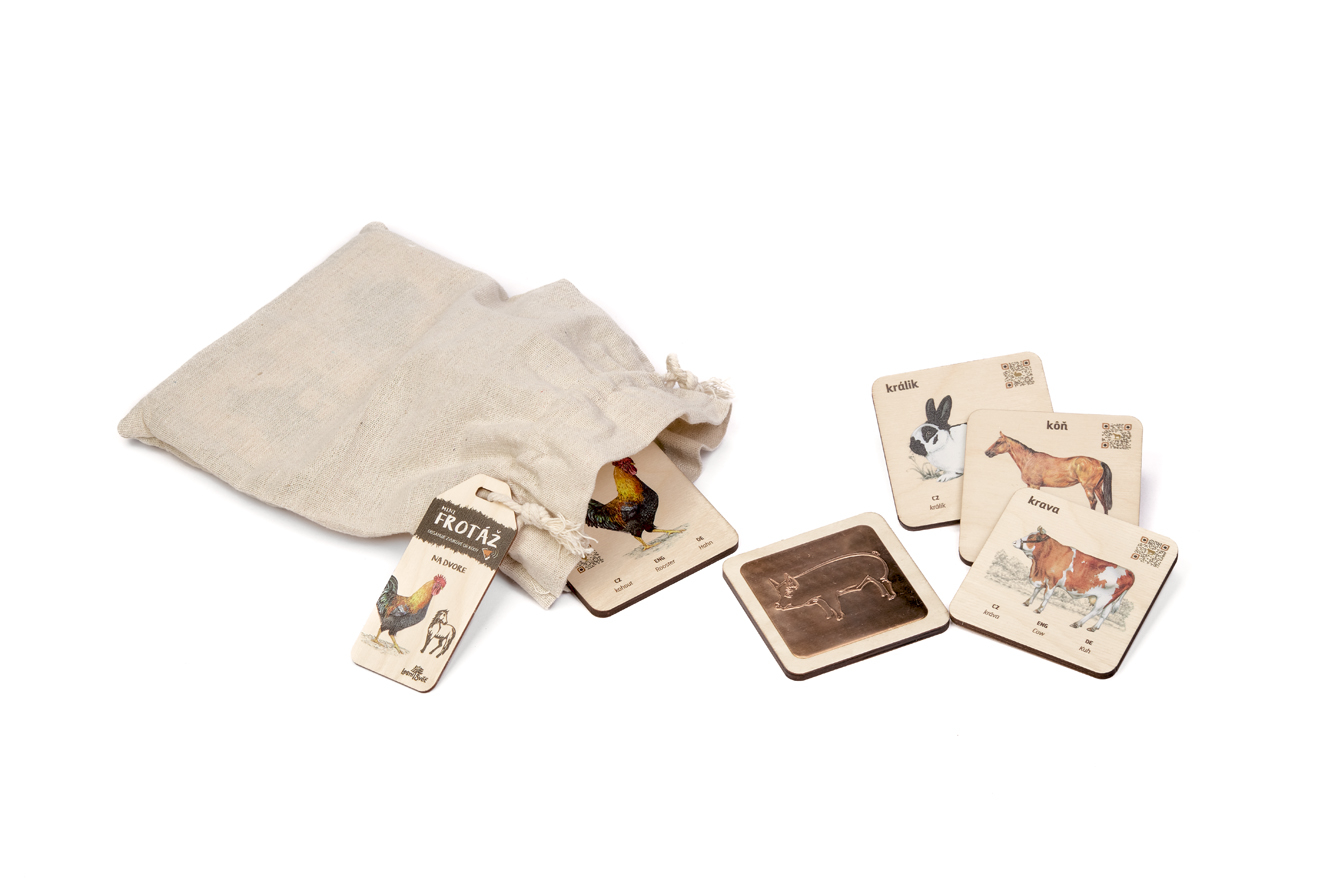 Kreatívne a nápadité tvorenie Frotáž je výtvarná technika, pri ktorej sa štruktúra alebo textúra predmetu prenáša trením cez papier. Obvykle sa na frotážovanie používa ceruzka, pastel, uhly alebo voskovky. Fotážovanie sa skvele kombinuje s ďalšími výtvarnými a výukovými aktivitami. Rozvíja zmyslové vnímanie, motoriku aj kreativitu. Hravou formou zoznamuje deti aj dospelých s prírodou. Obsahuje slovenský a latinský názov Ďalej názvy v češtine, nemčine a angličtine. Frotážová sada je komplexná učebná pomôcka určená pre vnútornú i vonkajšiu výučbu. Vhodná na výučbu cudzích jazykov. Využíva QR kódy, ktoré obsahujú hlasy zvierat, básničky a ďalšie zaujímavosti. Naše frotáže nesú ochranu priemyselného vzoru EUIPO. Frotáže z Lesného sveta Balenie obsahuje 10 drevených frotážových doštičiek. Drevenú doštičku s návodom na frotážovanie. Rozmer doštičky je 9x9 cm. Dodávané s medeno-zinkovými alebo hliníkovými frotážovými doštičkami. Súčasťou doštičiek sú QR kódy. Zabalené v prírodnom látkovom vrecúšku. České výrobky z Hradca Králové. Originálne obrázky od českých ilustrátorov. Druhy zvierat: moriak, mačka, kohút, krava, kôň, ovca, prasa, králik, koza, kačica Jirka Novák, maliar a ilustrátor Tvoria prevažne realistické kresby fauny a flóry. Ilustrátor učebných pomôcok, náučných tabúľ a hier s tématikou českých živočíchov. Viac o Jirkovi Ako na frotážovanie 1. Pripravte si všetko potrebné Budete potrebovať frotážovú doštičku, čistý papier a mäkkú ceruzku (ideálne grafitovú, aspoň HB alebo mäkšiu). 2. Umiestnite doštičku pod papier Frotážovú doštičku umiestnite tak, aby motív bol v mieste, kde ho chcete vykresliť. Uistite sa, že sa papier nepohybuje – môžete ho ľahko pridržať rukou alebo prichytiť páskou. 3. Začnite prechádzať ceruzkou Vezmite ceruzku do ruky pod miernym uhlom (šikmo) a jemne prechádzaj po papieri. Nezachádzajte moc na jedno miesto, skôr rovnomerne kĺzajte. 4. Dokončite obrázok Keď máte celý motív vykreslený, môžete ho ešte dozdobiť, domaľovať alebo skúsiť inú farbu. Každá frotáž je originál! Môže sa hodiť Papierové bloky Nemáte po ruke prázdny papier na frotážovanie? Naše bloky sú z ekologického papiera a navyše s krásnymi ilustráciami. Dostupné vo veľkostiach A4, A5 aj A6. Papierové bloky Drevené pečiatky Obľúbený doplnková, alebo nadväzujúca aktivita na fotážovanie. Deti milujú svet fantázie. S pečiatkami ľahko dotvoríte príbeh na papieri aj mimo neho Pečiatky VšadeLEPKY Neobyčajné originálne samolepky s motívmi zvierat ľahko doplnia frotáže o nový prvok. VšadeLEPKU môžete opakovane premiestňovať. VšadeLEPKY Aplikácia Lesný svet Náučná aplikácia zadarmo na stiahnutie Dostičky obsahují QR kódy Po načítaní môžete prehrať zvuk zvieraťa Súčasťou je animácia a krátke rozprávanie Vyskúšajte, čo všetko vie * Aplikáciu sťahujte iba z oficiálnych obchodov Google Play alebo AppStore, kde je overená a dostupná vždy zadarmo. Od akejkoľvek inej aplikácie sa Lesný svet dištancuje a nenesie žiadnu zodpovednosť za jej použitie.