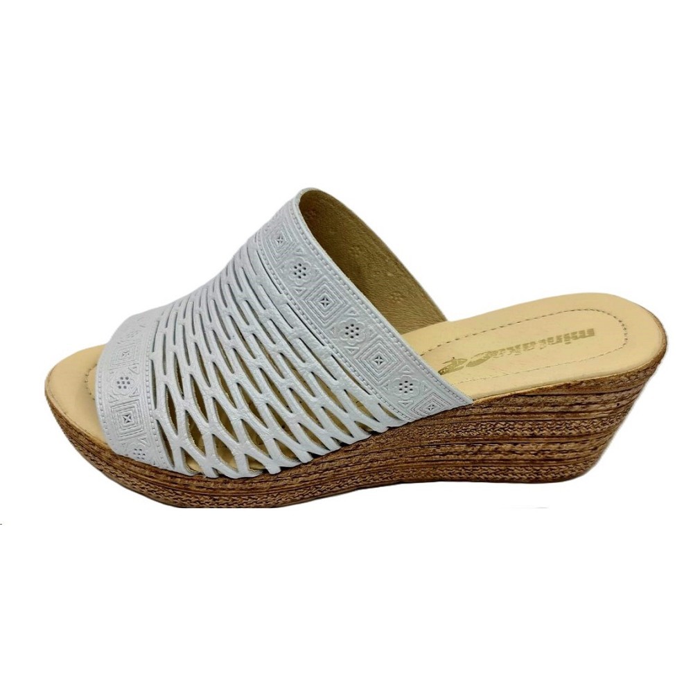 Pantofle MINTAKA 51046/23 dámské na klínku bílé Stylové dámské pantofle na klínovém podpatku kombinují pohodlí a moderní vzhled pro každodenní letní nošení. Svršek je ozdoben jemným vyřezávaným vzorem, který zajišťuje prodyšnost a zároveň dodává pantoflím elegantní nádech. · Vyřezávaný svršek s jemnými detaily · Pohodlná kožená stélka s měkkým došlapem · Lehký a stabilní klínový podpatek s přírodním vzhledem · Nazouvací provedení pro snadné obouvání · Barva: bílá · Dostupné velikosti: 3741 Tyto pantofle jsou skvělou volbou pro letní sezónu lehké, vzdušné a snadno kombinovatelné s vaším oblíbeným outfitem. Velikost prosím napište do poznámky. p.MsoNormal, li.MsoNormal, div.MsoNormal{ margin-top:0cm; margin-right:0cm; margin-bottom: 1.0pt; margin-left:0cm; line-height:1.07; font-size:11.0pt;}
