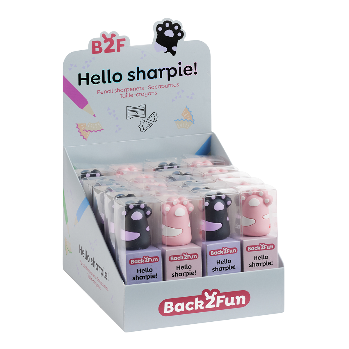 Roztomilé ořezávátko s motivem tlapek, které se postará o ostré tužky a zároveň poslouží i jako stylový doplněk v každém penálu. Příjemný soft touch materiál a veselá kombinace barev.rozměry: ø 27 × 45 mmmateriál: pružný a odolný kaučukmix barev: růžovo - bílá, černo - fialovásoft touchpro standartní velikost tužekobsah balení: 20 ks/displej