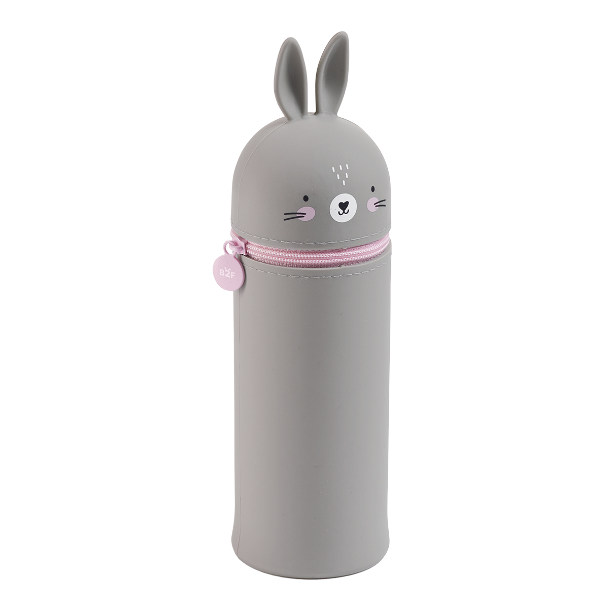 Praktický silikonový penál vhodný na tužky nebo jiné drobnosti. Roztomilý design, možnost roztažení boční strany pro navýšení kapacity penálu. Roztomilé zvířecí motivy a jedinečný vzhled, doplněné o 3D detaily oušek.rozměry: standartní - ø 65 × 167 mm; zvětšený - ø 65 × 210 mmmateriál: 100 % SImotiv: zajícroztahovací plochá strana pro navýšení kapacity penáluuzavírání na zipobsah balení: 1 ks