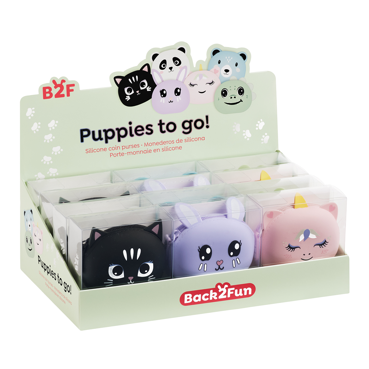 Roztomilé silikonové peněženky s motivem zvířátek, doplněné o veselé 3D detaily oušek. Na omak příjemný soft touch, výrazné poutko pro snadnější uchycení. Vhodné na mince, bankovky a jiné drobnosti.rozměry: 90 × 70 × 35 mmmateriál: 100 % SImix motivů: panda, zajíc, kočka, jednorožec, medvěd, dinosaurussoft touchuzavírání na zipobsah balení: 12 ks/displej
