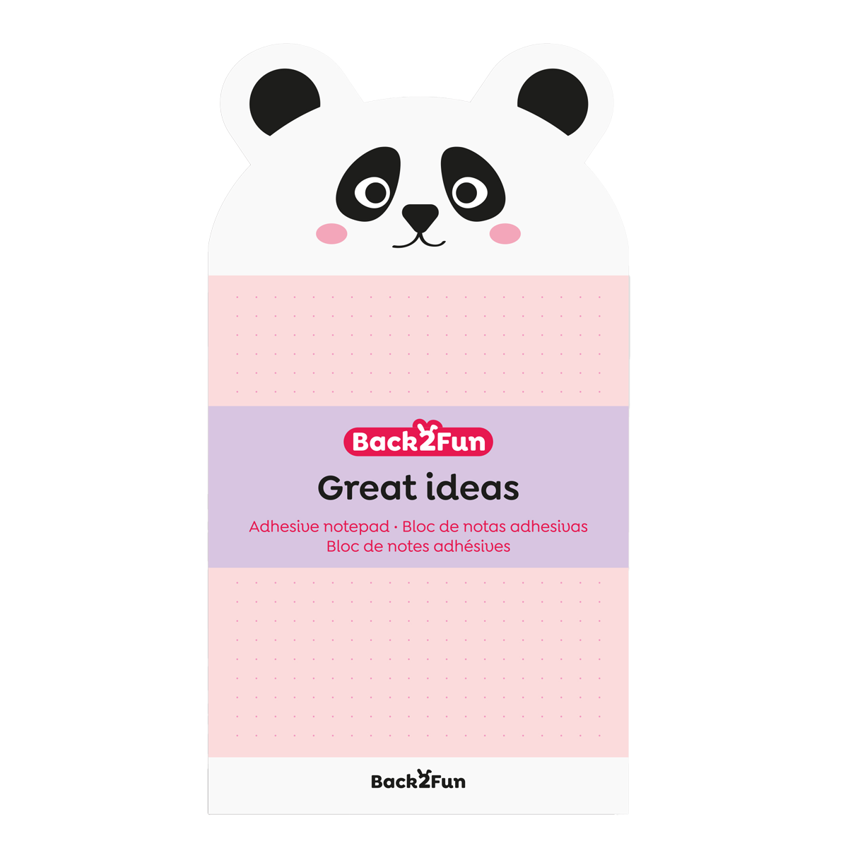 Barevné bločky s tvarem zvířátek, které zpestří každý vzkaz či připomínku. Samolepicí zadní strana pro snadné připevnění na sešit, učebnici, nástěnku nebo stůl. Obsah balení 60 listů.rozměry: 90 × 165 mmformát: 60 listů, 90 gr/m2, tečkymotiv: pandasamolepicí zadní stranavhodné pro psaní vzkazů, poznámek a připomínekobsah balení: 1 ks