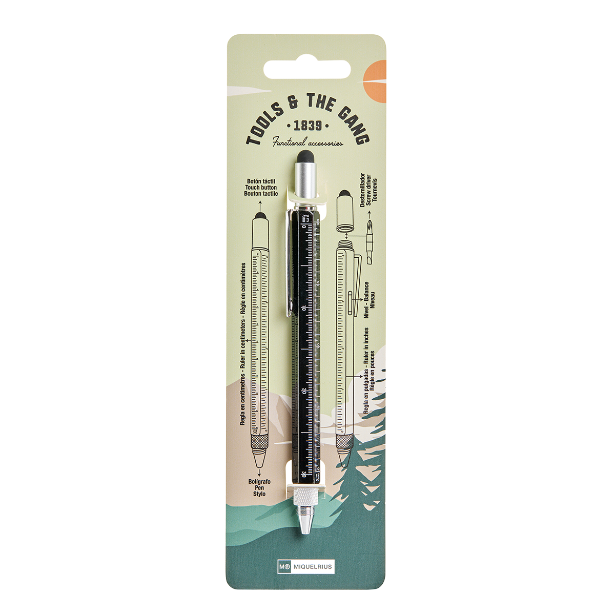 rozměry pera: 155 × Ø 13 mmbarva náplně: modrástiskací mechanika5 v 1: kuličkové pero, pravítko v centimetrech i palcích, vodováha, plochý a křížový šroubovák, dotykový stylus pro tablety a smartphonybarva: černáobsah balení: 1 ks