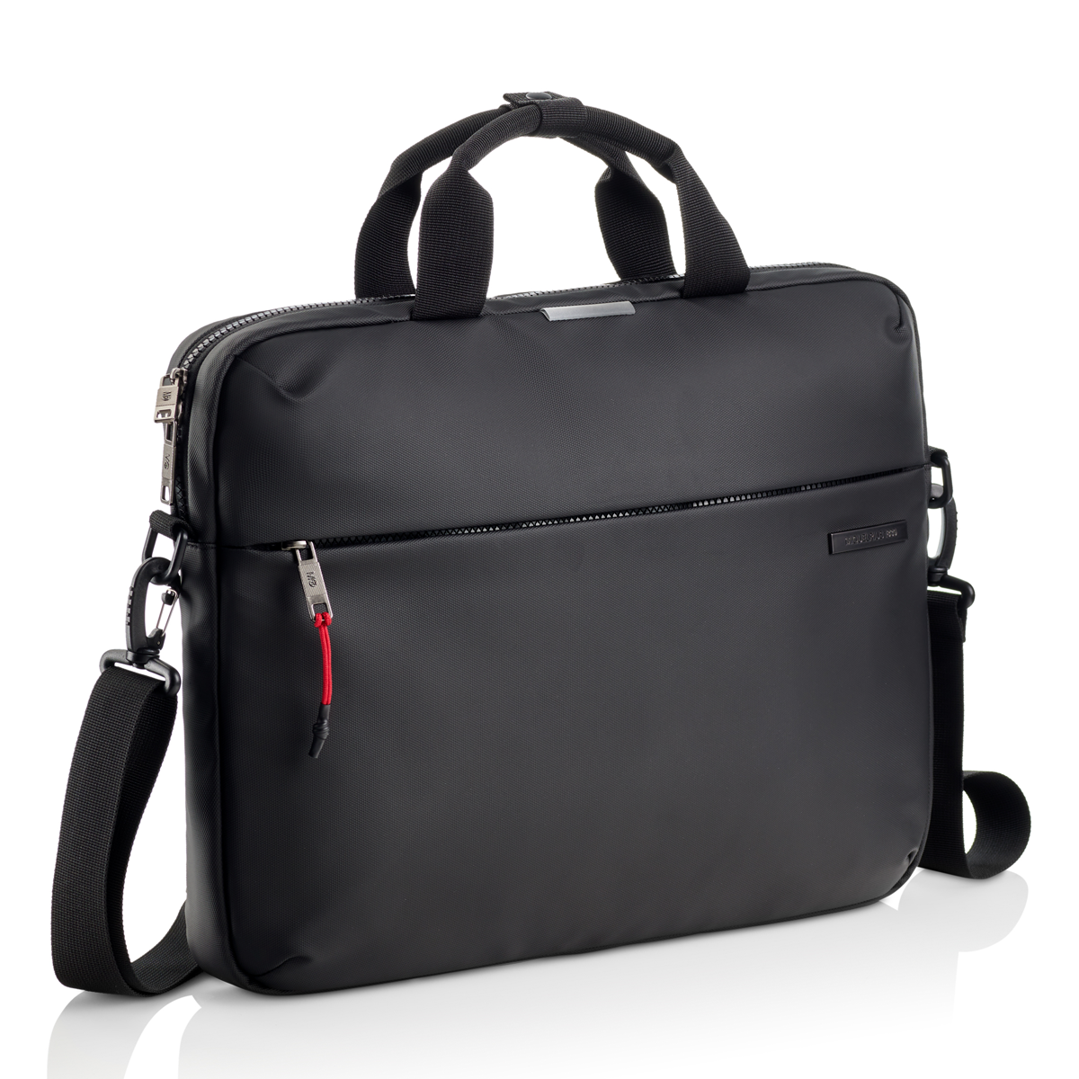Lehká, voděodolná taška pro notebook a další pracovní potřeby. Extra jemný fleece a neoprenová fixace chrání notebook uvnitř. Rukojeti a popruhy s výplní pro pohodlné nošení a držení. Reflexní prvek na přední straně. Možnost připevnění k troleji kufru. Menší kapsa je vybavena organizérem pro zpřehlednění drobností. Robustní kovový zip s bezpečnostním očkem pro uzamčení tašky zámkem. Kovové decentní logo.vnější rozměry: 41,7 × 30,5 × 3,2 cmmateriál: 100 % PES2 kapsyuzamykatelný zipruční a ramenní popruhyvnitřní organizérmožnost připevnění k troleji kufrubalení: 1 ks