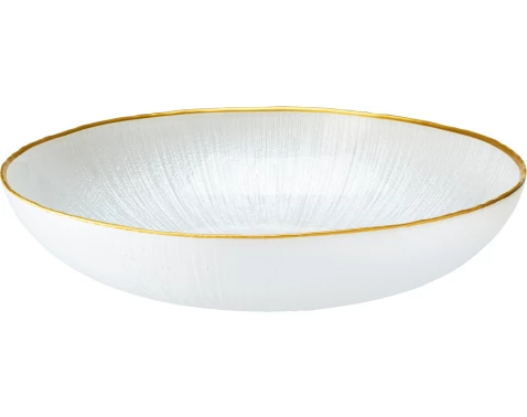 Elegantní miska z bílého skla s jemnou texturou a zlatým okrajem dodá šmrnc každému svátečnímu stolování, nejen na Vánoce. Průměr 21 cm.