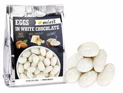 Andělsky bílá, nebesky dobrá! Splnili jsme přání milovníků kokosových vajíček a naplnili jimi také pytlíky! Vychutnejte si pražené mandličky v bílé čokoládě posypané strouhaným kokosem. Chuťový zážitek nabízíme opět bez palmového oleje a umělých aromat.