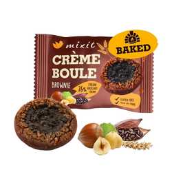 Pečená Crème boule? Ano, opravdu! A rozhodně Vás nechceme „vypéct“ – právě naopak. Představujeme Vám naši první pečenou verzi oblíbené Crème boule, která chutná jako lahodný čokoládový dezert, rozplývá se na jazyku a voní po čokoládě i oříšcích. Jednoporcové bezlepkové brownie s jemnou náplní z piemontských lískových oříšků je vždy připravené zpříjemnit Váš den. bez lepku a palmového oleje26 % tvoří lískooříškový krém: s originálními oříšky z italského Piemontuvysoký obsah vlákninyvláčné těsto z kešu a lískooříškového krému