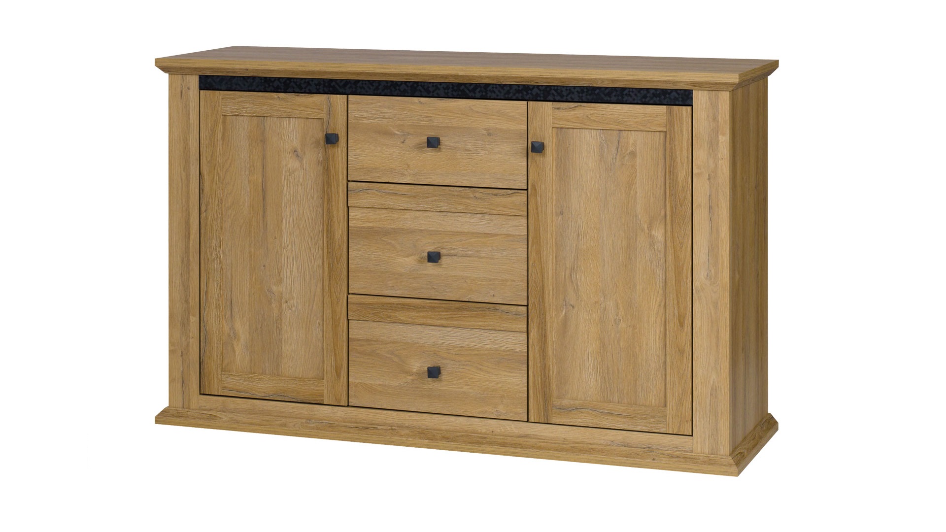 Komoda Mezo MZ11 • Vlastnosti: Materiál Komponenty ze sestavy Mezo jsou vyrobeny z laminované dřevotřískové desky. Hrany desek Hrany desek jsou opatřeny ABS dýhou. Úchyty Dvířka/zásuvky otevřete pomoví kovových úchytek. • Barevné provedení Komponenty ze sestavy Mezo jsou dodávány v odstínu Dub grand nebo v kombinaci Dub grand a Bílá alpská. Dub grand Dub grand / Bílá alpská • Rozměry 87 cm celková výška 140 cm celková šířka 45 cm celková hloubka 16 mm tloušťka desky • Sestava MezoZaujal vás daný kus a rádi byste si pořídili další díly ze sestavy Mezo? Šatní skříň, komoda, konferenční stolek, vitrína a další. Vytvořte si sestavu podle svých představ. Zobrazit více • UpozorněníOdstíny prezentované na fotografiích jsou ilustračním materiálem, barvy se mohou lišit od vyobrazení na fotografiích podle nastavení vašeho zobrazovacího zařízení.