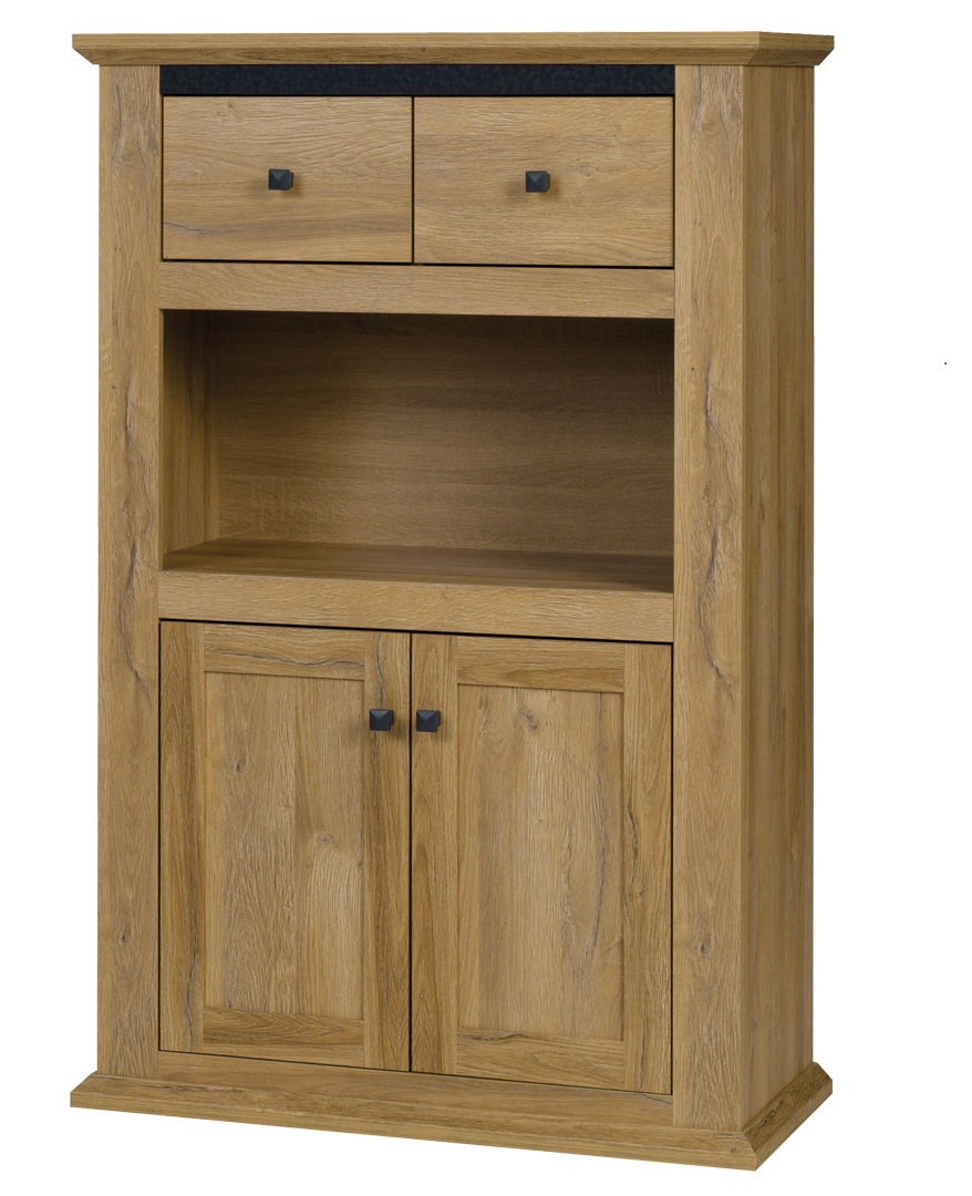 Komoda Mezo MZ8 • Vlastnosti: Materiál Komponenty ze sestavy Mezo jsou vyrobeny z laminované dřevotřískové desky. Hrany desek Hrany desek jsou opatřeny ABS dýhou. Úchyty Dvířka/zásuvky otevřete pomoví kovových úchytek. • Barevné provedení Komponenty ze sestavy Mezo jsou dodávány v odstínu Dub grand nebo v kombinaci Dub grand a Bílá alpská. Dub grand Dub grand / Bílá alpská • Rozměry 130 cm celková výška 85 cm celková šířka 40 cm celková hloubka 16 mm tloušťka desky • Sestava MezoZaujal vás daný kus a rádi byste si pořídili další díly ze sestavy Mezo? Šatní skříň, komoda, konferenční stolek, vitrína a další. Vytvořte si sestavu podle svých představ. Zobrazit více • UpozorněníOdstíny prezentované na fotografiích jsou ilustračním materiálem, barvy se mohou lišit od vyobrazení na fotografiích podle nastavení vašeho zobrazovacího zařízení.