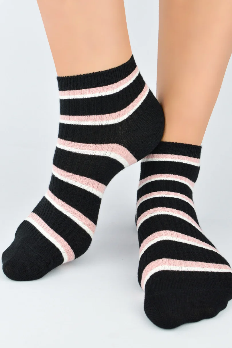 Stopki damskie MODAL ST052 od NOVITI to doskonały wybór dla kobiet ceniących komfort i jakość. Wykonane z modalu i bambusa (72%), z dodatkiem poliamidu (25%) i elastanu (3%), zapewniają miękkość, przewiewność i doskonałe dopasowanie do stopy. Bezuciskowa konstrukcja oraz płaskie szwy eliminują ryzyko otarć, gwarantując wygodę przez cały dzień. Dodatkowo wzorzysta faktura nadaje im modny wygląd. Naturalne właściwości bambusa pomagają regulować wilgotność, zapewniając świeżość i suchość. Idealne zarówno na co dzień, jak i do aktywności sportowych.