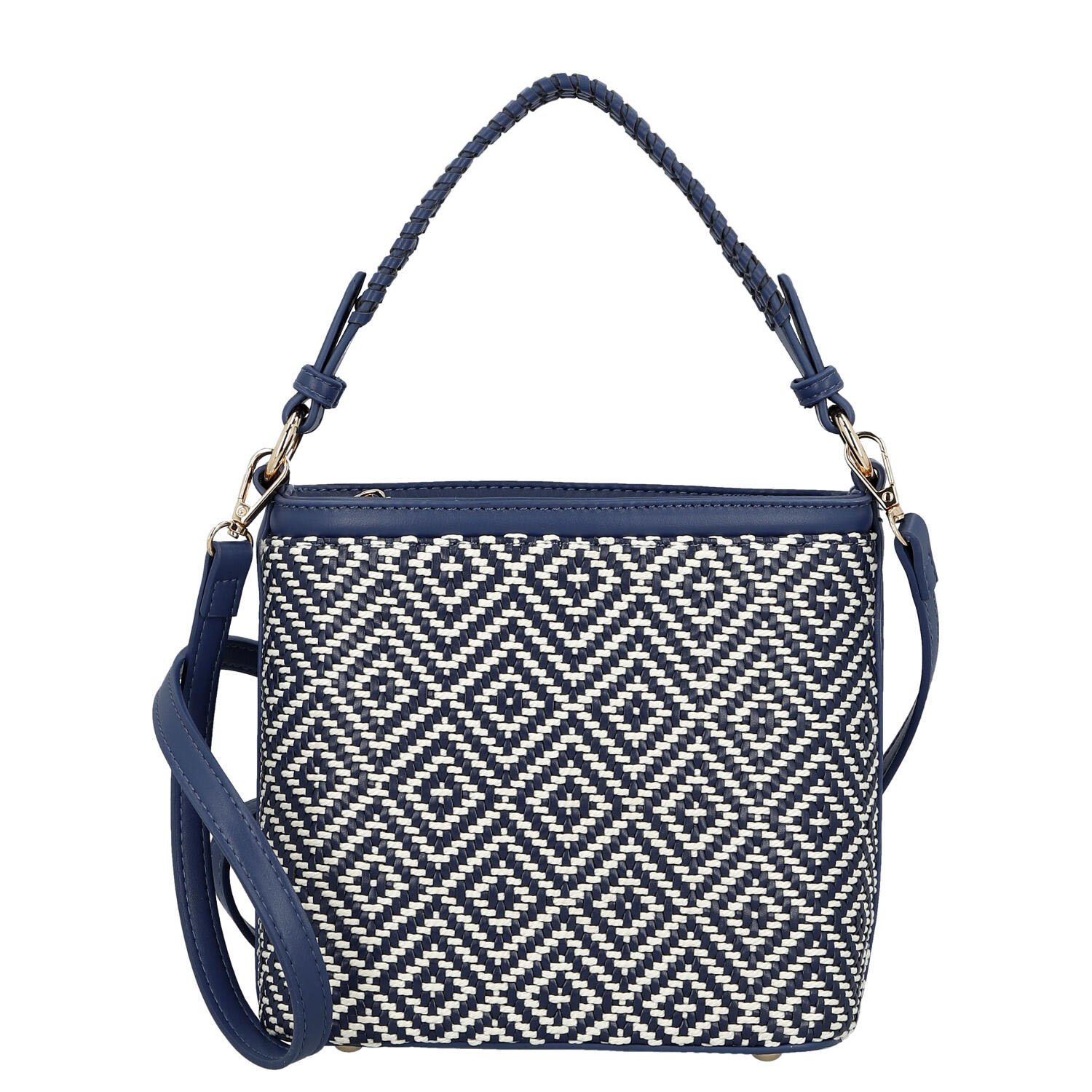 Moderní kabelka zaujme výrazným geometrickým vzorem, který dodává celému modelu stylový a originální vzhled. Kombinace strukturovaného textilního povrchu s hladkými detaily působí elegantně a zároveň svěže.